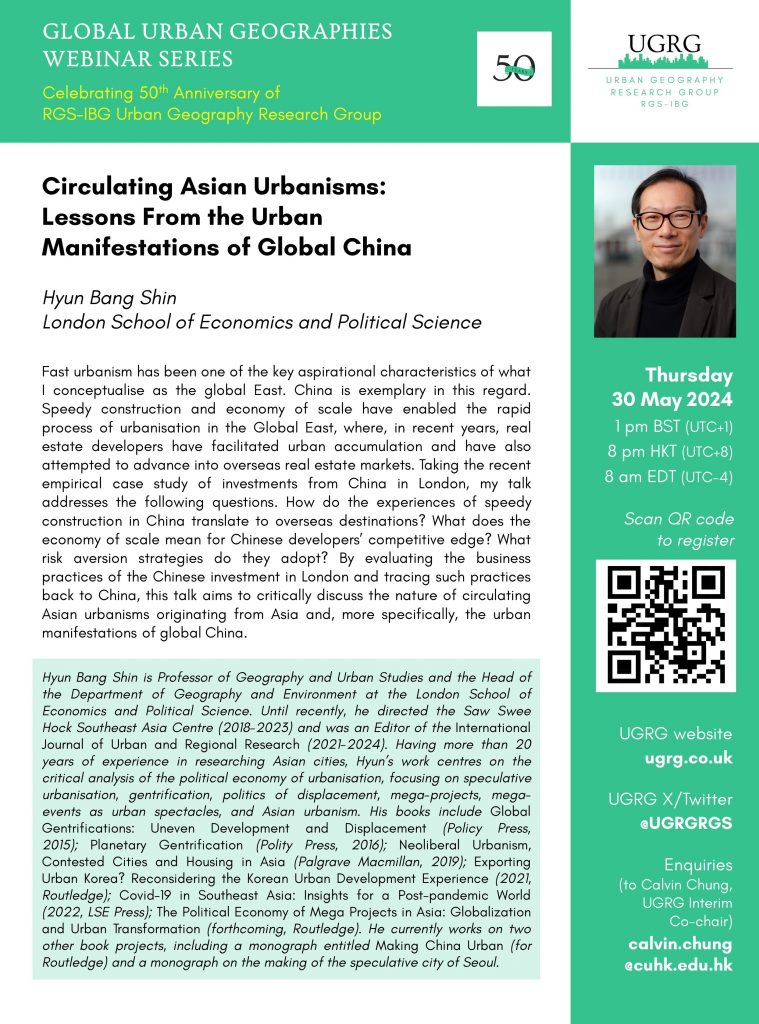 The 3rd session of our Global Urban Geographies Webinar Series with Prof Hyun Bang Shin